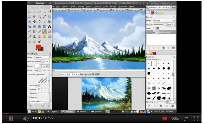I am an artist myself and have always enjoyed the Bob Ross painting series on public television here in the states. Have you ever wanted to do something similar in GIMP? Well, Ronnie Tucker, the author of Full Circle Magazine has put together a series called " Bob Ross in GIMP". Its a great tutorial for both enjoyment and to learn some of the many features in GIMP. Scared of GIMP? Fear no more... this will shake your fears away and get you comfortable. Check it out!