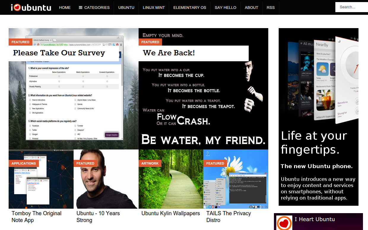 And here we go! The NEW I Heart Ubuntu website takes a more modern magazine style look. Some of the new features include: an easy categories section at the top, an easy search feature at the top right, the 6 top featured articles right on the main part of your screen, and our popular posts are easy to find on the right side too. We now have a "Video of the Week" on the righthand side and our easy to see social icons at the bottom of the page. We have our RSS link easily available at the top and bottom of our site now. Commenting on articles is available via Disqus and Facebook. Our website also (finally) looks great and easy to use on mobile devices.