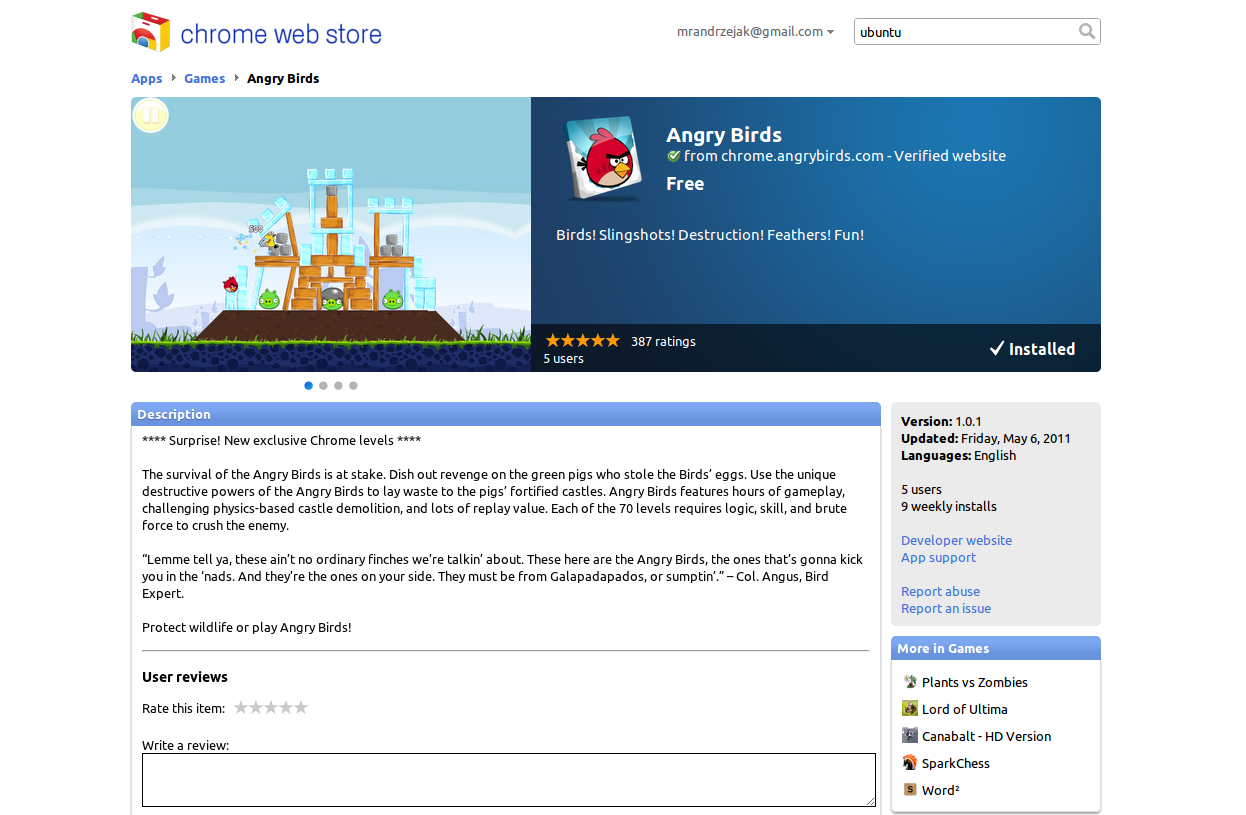 For those of you who dont know what all the hype about Angry Birds is yet (or non-hype) you can give it a try and burn away hours as it is now FREE in the Google Chrome Web Store. Try it out (you will need Chrome or Chromium to access the web store)…