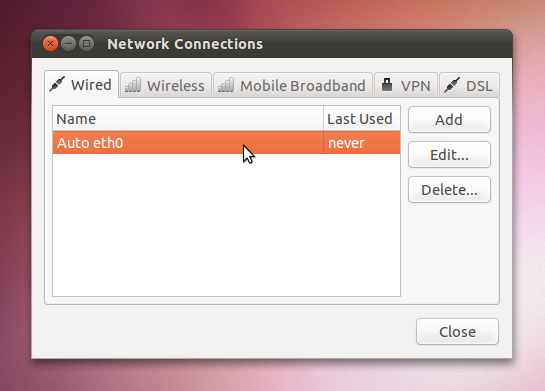 Its simple so far isnt it? 🙂 Now that you are in your network connections, you want to adjust the wired connection settings. In most cases its called “Auto eth0“. So highlight it and then click the “Edit” button on the right of the menu.
