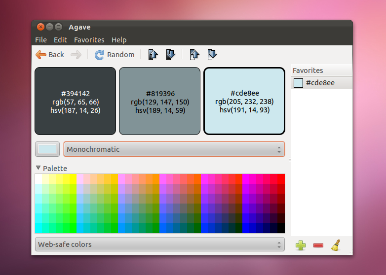 Agave is a very simple application for the GNOME desktop that allows you to generate a variety of colorschemes from a single starting color. It is free software licensed under the open-source GPL License.