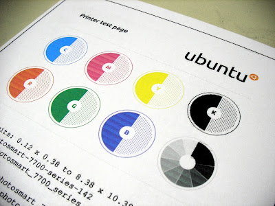 There is a beautiful new print test page that appeared about a month ago for the new release of Ubuntu 12.04. It looks very classy and offers more benefits. The new design uses a lot less ink and even offers printer info such as printer, PPD driver used, and media limit size. The photo above is from an old HP printer I just hooked up. Ubuntu found it immediately and now I need to run the printer alignment tool thats part of the HPLIP toolbox found in the Ubuntu Software Center.