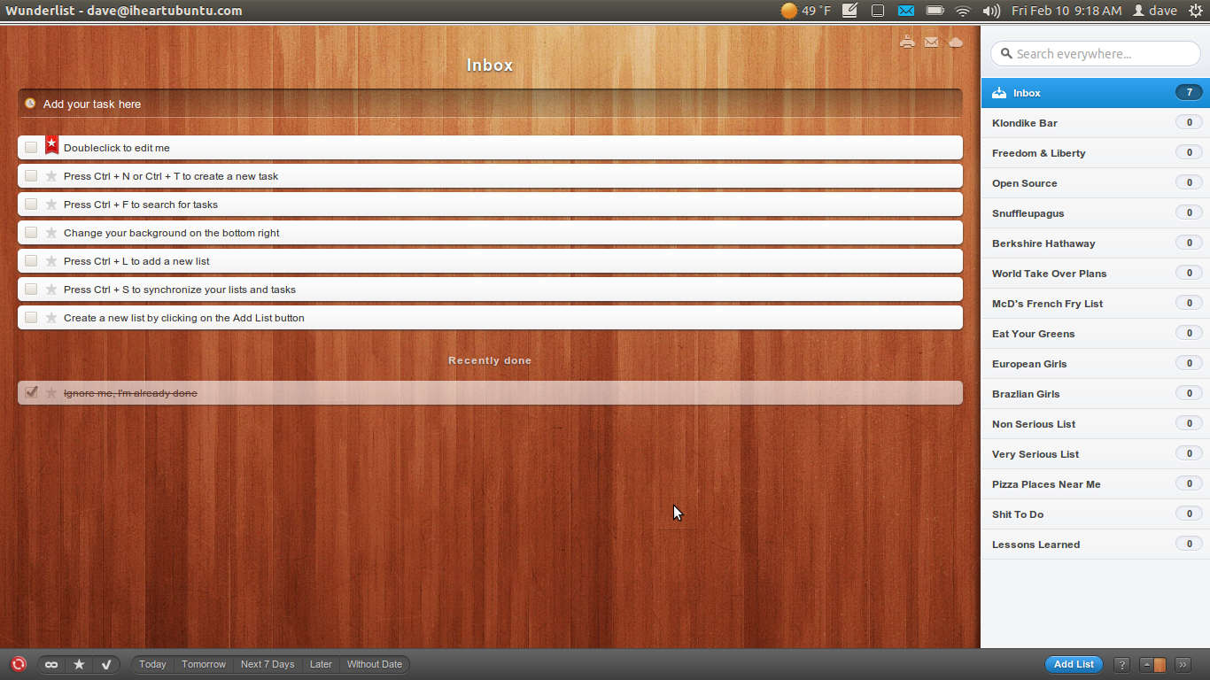 Wunderlist is a great to-do application that is cross platform. For previous Ubuntu users using 10.04, 10.10 and 11.04 Wunderlist can be found in the Ubuntu Software Center. For 11.10 Oneiric users (64 bit), Wunderlist dropped the ball on us. Its been 4 months now without Ubuntu support for Oneiric users (my guess is that they are busy on a newer app with more features).