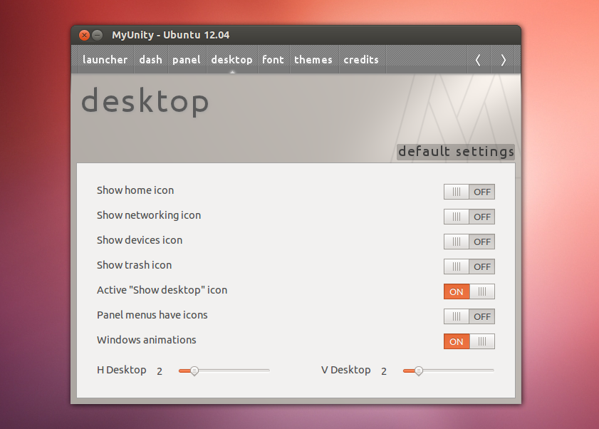 After installation open up the MyUnity program and click the "desktop" tab and turn on the active "show desktop" icon.
