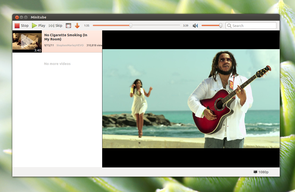 * NOTE: Some versions of Ubuntu have a problem with streaming video which affects programs like totem and minitube. If after installing Minitube and videos dont work at all you'll have to run a simple fix as well. I did not have any problems on 12.10. Your experience might vary.